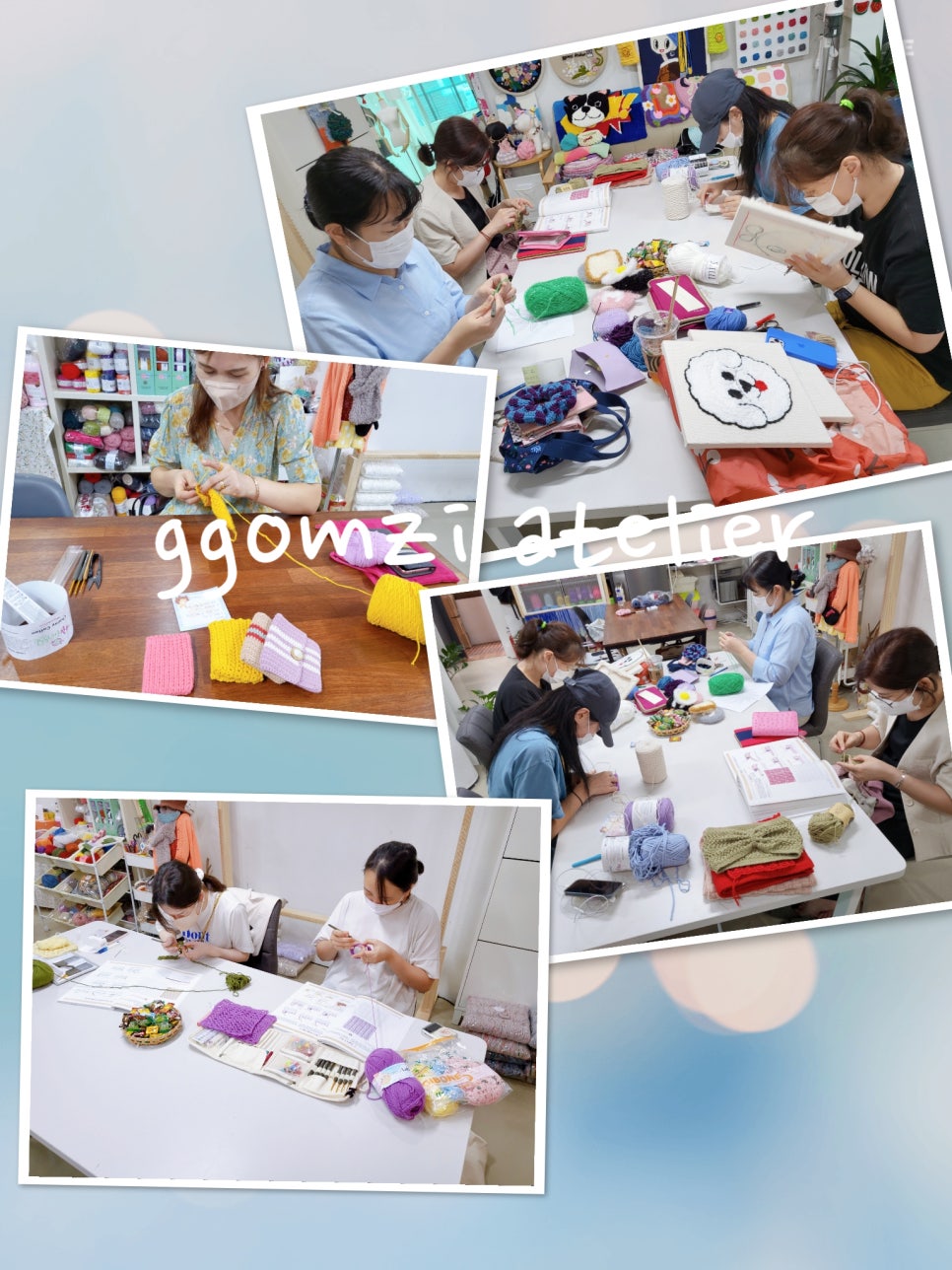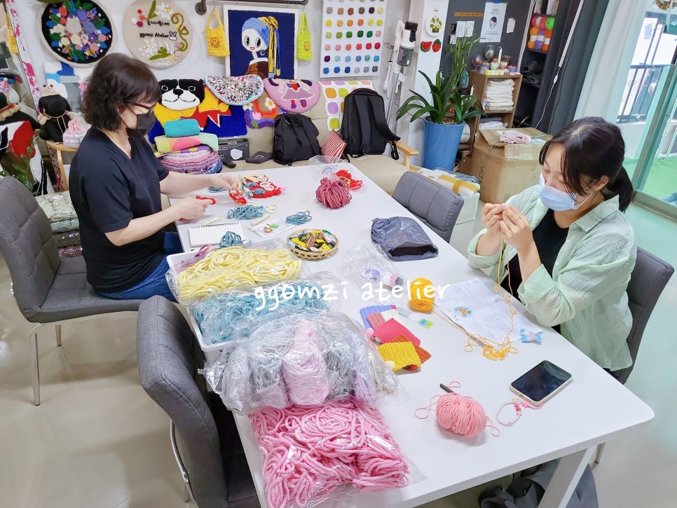 손끝에서 자라나는 실, 웃음과 따뜻한 대화, 그리고 완성된 작품들이 담겨 있어요.