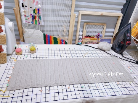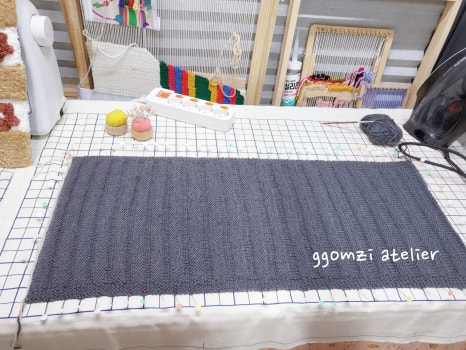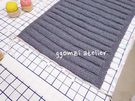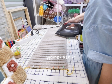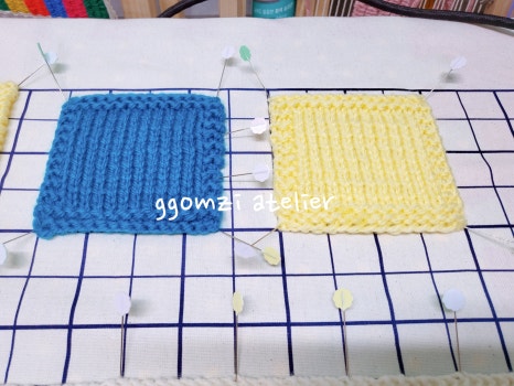 뜨개 작품을 완성한 후, 모양을 단정히 잡아주는 마무리 단계죠.