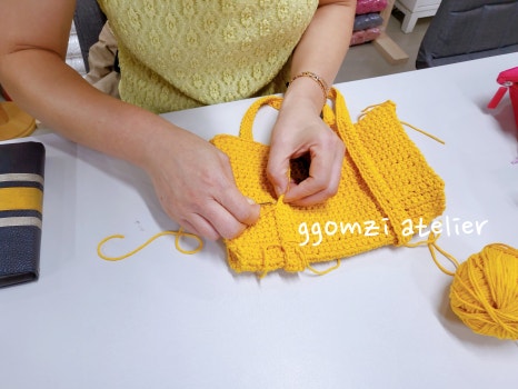 마지막 한 분은 정규반으로 노란색 토트백을 완성 중이셨어요.