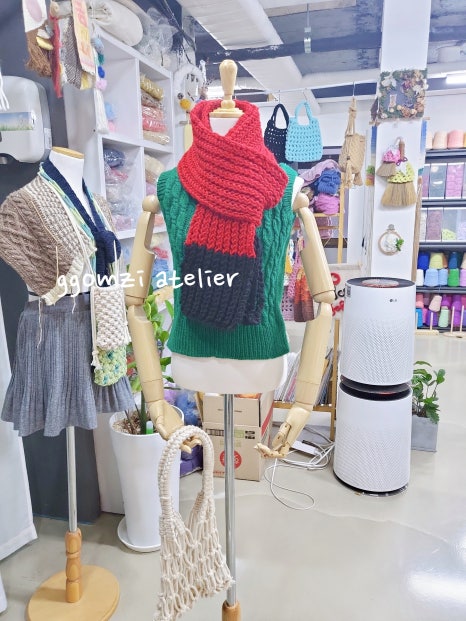 완성된 목도리는 마네킹에 둘러 사진을 찍었는데,