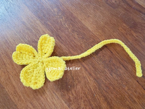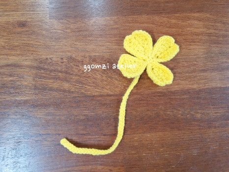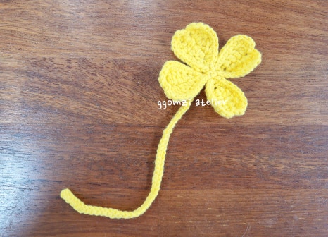 노란색 실로 작은 꽃을 만들어