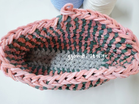 양말목은 일반 실보다 탄성이 있고 두께감이 있어서, 초보자도 손에 무리가 가지 않으면서도 형태를 잡기에 좋습니다.